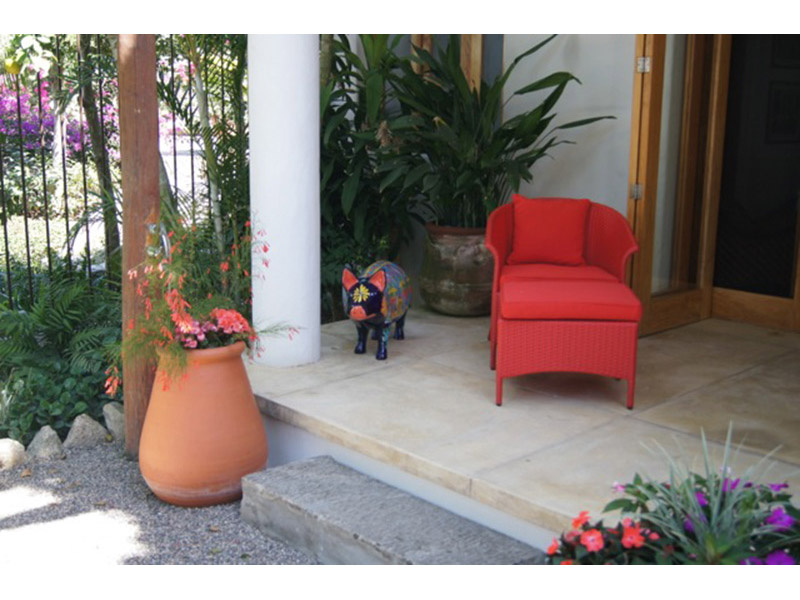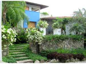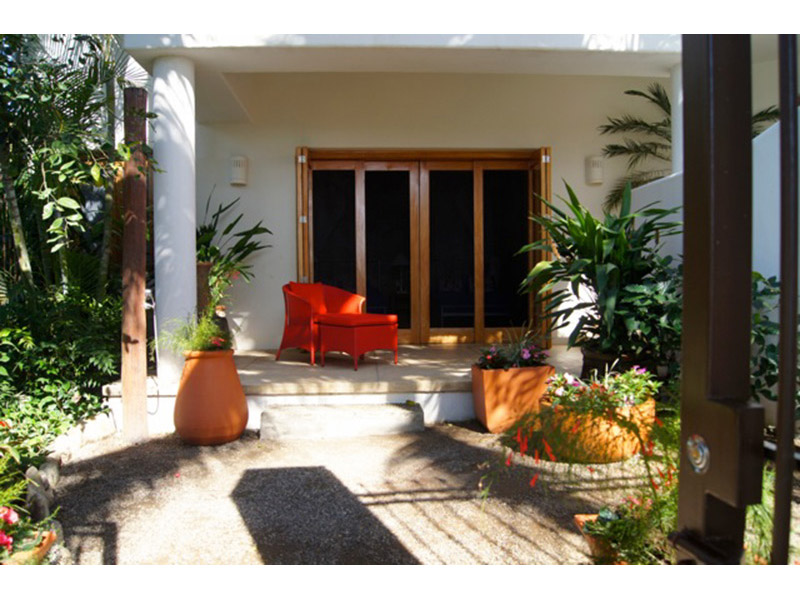 - The large garden at the side of the house is planted with a mixture of tall palms, fruit trees, bougainvillea and other tropical flowers.
