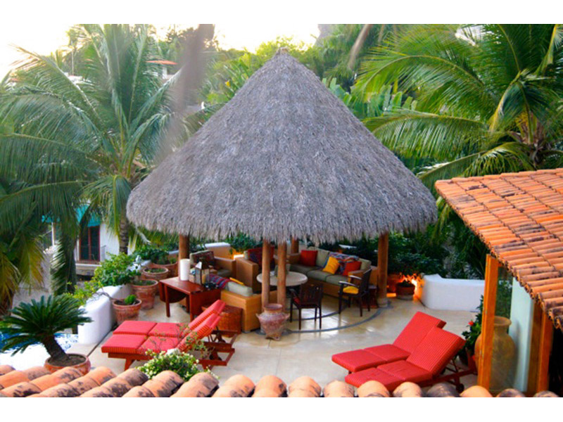 - A beautifully furnished outdoor Palapa serves as a second living room.